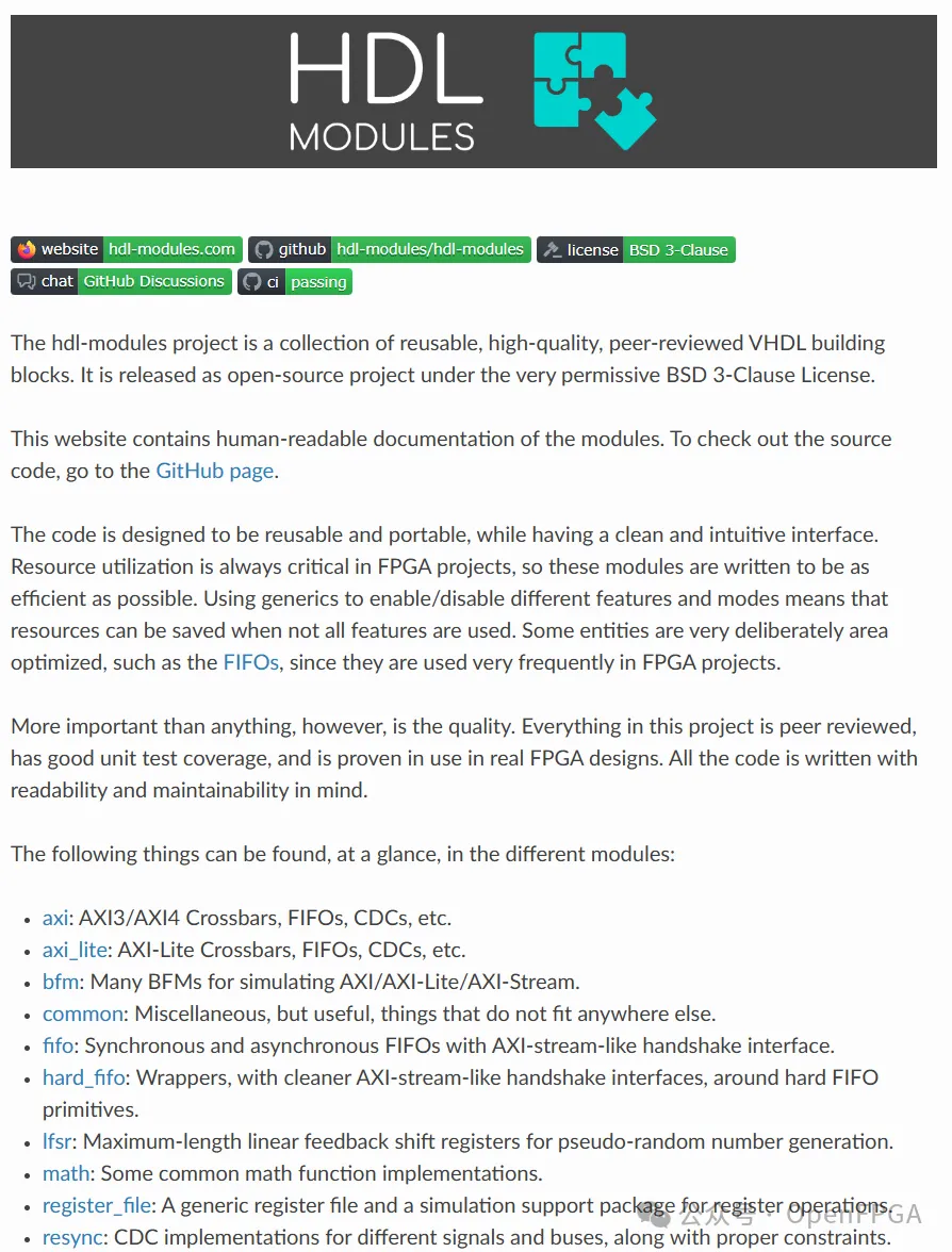 由 Paul Scherrer 研究所开发,该库提供内存、FIFO、跨时钟域、时分复用、AXI 接口和其他常见模块的 IP 模块。