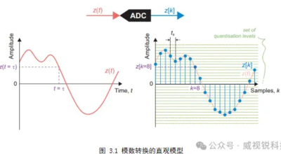 将模拟信号转换为数字等效信号时发生的两个过程分别是采样和量化。可以将采样视为将信号的时间轴转换为一组离散时刻