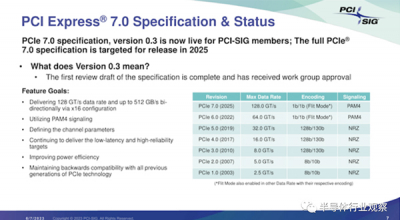 PCI-SIG 本周向其成员发布了 PCI-Express 7.0 规范的 0.5 版,这是该规范的第二版草案
